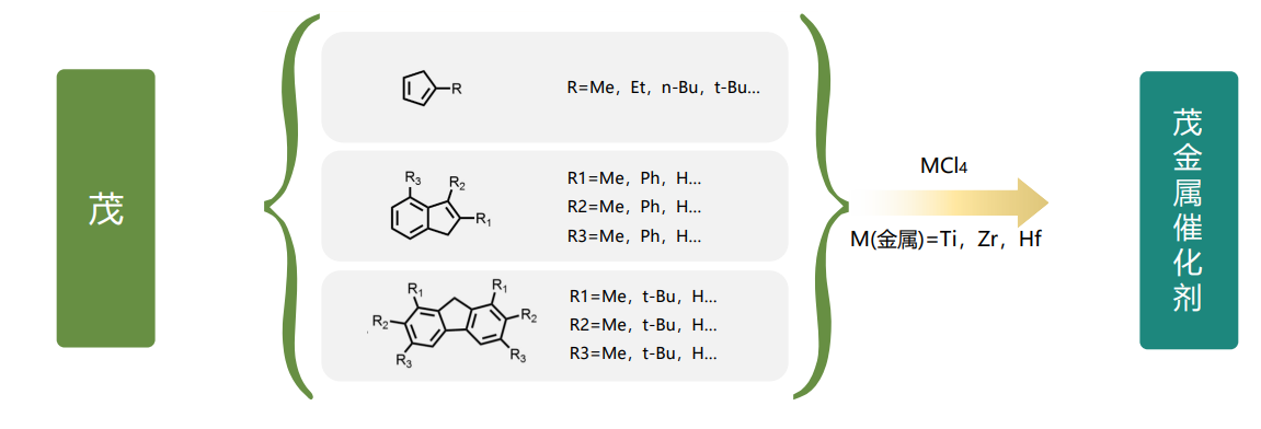 茂金屬催化劑是第三代高端烯烴聚合用催化劑,作為均相單活性中心催化劑,具有優異的共聚性能,聚合產物的分子量分布窄,黏度指數高,產物性質穩定,使用壽命長等特點;可以精確地定制聚丙烯樹脂的分子結構,包括相對分子質量及其分布、晶體結構、共聚單體含量及其在分子鏈上的分布等。是關鍵“卡脖子”材料制約著國內高端聚烯烴的發展;是國家《石油和化學工業“十四五”發展指南》中重點課題方向。